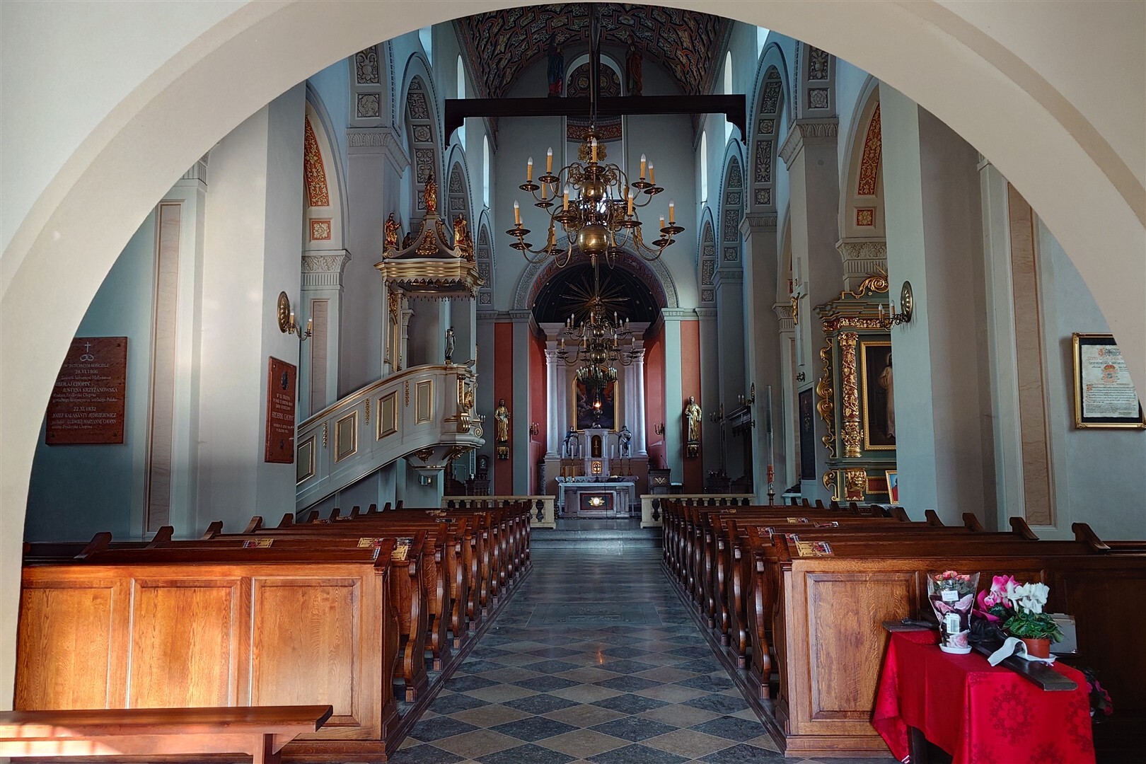 W podziemiach znajdują się groby rodu Lasockich, a na ścianach i pod chórem zobaczycie tablice poświęcone m.in. Fryderykowi Chopinowi, jego rodzicom oraz postaciom związanym z historią Polski.