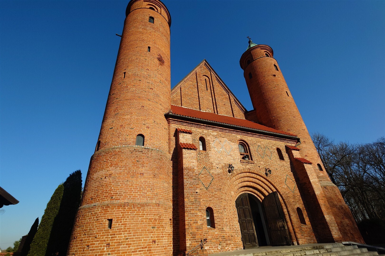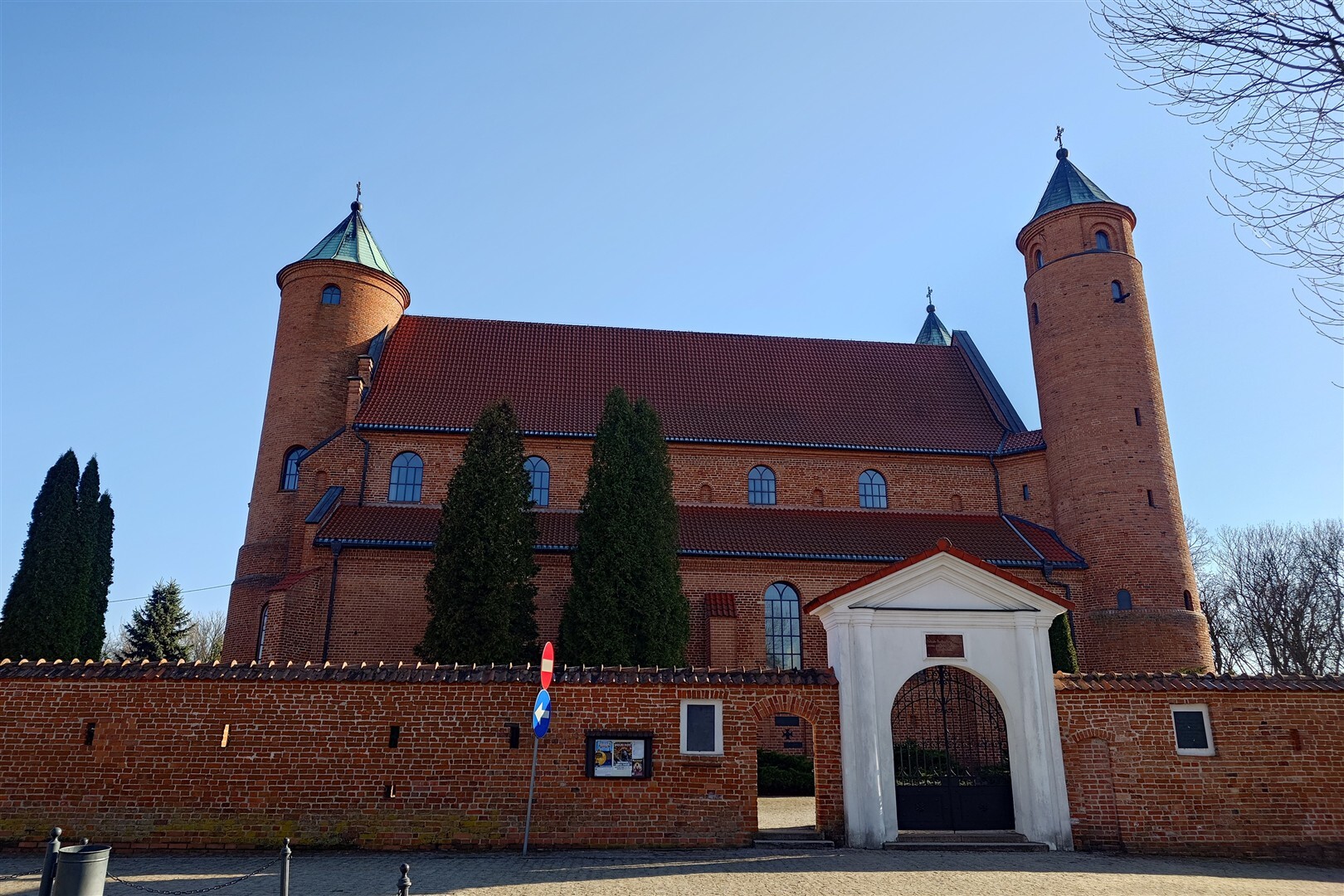 Kilka kilometrów od Żelazowej Woli, w niewielkiej miejscowości Brochów, stoi budowla, która od razu wyróżnia się na tle innych mazowieckich świątyń. Bazylika św. Jana Chrzciciela i św. Rocha powstała w latach 1551–1561 z inicjatywy rodu Brochowskich, a jej projekt przypisuje się architektowi Janowi Baptyście z Wenecji. Na miejscu zobaczycie masywną ceglaną bryłę z trzema charakterystycznymi wieżami, która bardziej przypomina niewielką twierdzę niż klasyczny kościół parafialny. Z tym miejscem związana jest również ważna ciekawostka historyczna, bo w 1810 roku ochrzczono tu Fryderyka Chopina. To właśnie ten fakt sprawia, że dla wielu osób wizyta w Brochowie jest naturalnym uzupełnieniem zwiedzania pobliskiej Żelazowej Woli.